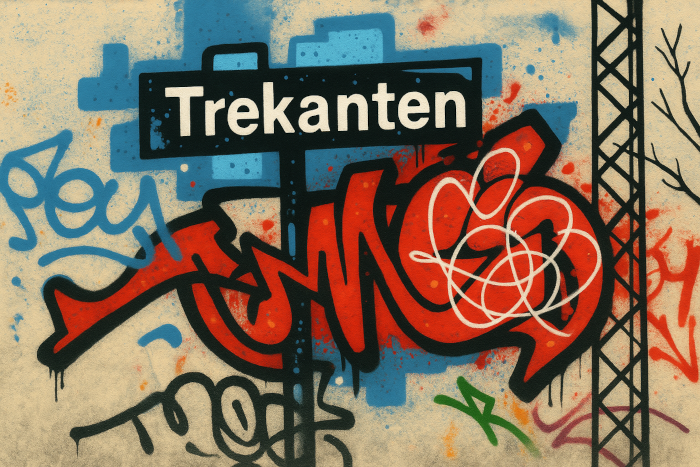 Rödmarkör är Datorhjälp Stockholm och Blåmarkör är Trekanten, Liljeholmen